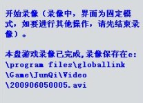 2、录像 在对局中可点击“录像”按钮,对当前对局进行视频记录,录像按钮图示: ,视屏录制中,界面状态为锁定,即不可拖动、切换界面;此时的录像按钮显示为: ,再次点击,停止录像。在使用录像功能时,右侧聊天区域会出现文字提示,截图保存路径默认为“联众世界”的安装路径。如图: