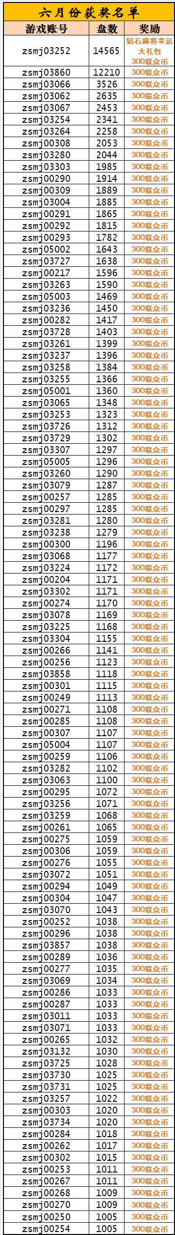 2、满足每月1000盘游戏记录的玩家会获得300联众币奖励。(总奖金30000联众币)