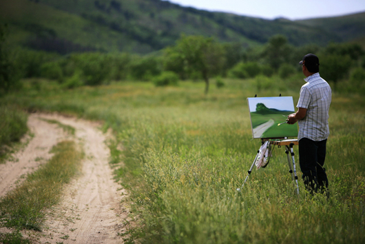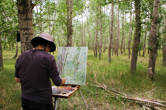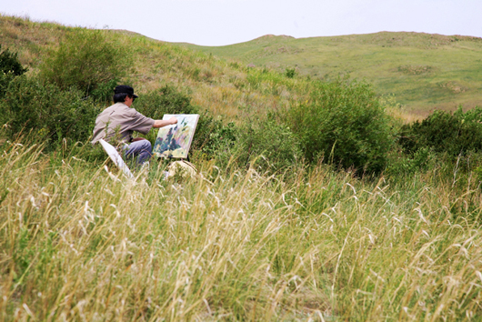 据悉,本次写生活动的邀请发出后,立即得到了画社众多艺术家们的积极回馈,以至于体育关爱基金项目组不得不几次增加人员和车辆等各项配备满足艺术家们参与写生创作的公益热情。 内蒙古正蓝旗自然条件独特。北部为浑善达克沙地,呈现出沙地草原的自然风光,南部为金莲川草原。并且7月的正蓝旗正值水草丰美之季,集草原、沙漠、森林、湖泊风光于一体的景色,正在写生创作的佳地。三天下来,正蓝旗的美丽景致和深厚的草原文化底蕴跃然纸上,画家们现场创作的大小作品累计30余幅。创作期间,很多艺术家只带一瓶水和几个鸡蛋做为干粮,并且由于创作的需要,不少画家几乎是在毫无遮挡的烈日下完成3天的写生作品,令人尊敬。