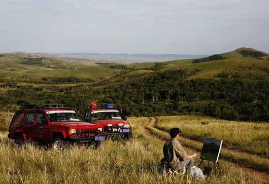 2009年7月1日上午9时,随着红色越野吉普车队发动机的启动声,“体育关爱基金内蒙创作写生活动”一行8辆越野车排成整齐的一字形缓缓驶入人们视野,从从北京德胜门桥朝着旅程终点站——风景如画的内蒙古正蓝旗草原进发。