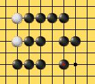 下面图中的上半部分 虽然黑棋形成了连续的四个连续的黑棋,但是由于黑棋不能再走一手形成五连