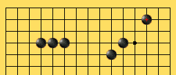 活四:在棋盘某一方向上有同色4子不间隔地紧紧相连,且在此4子两端延长线上各有一个无子的交叉点与此4子紧密相连。