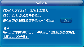 本游戏中引入了游戏豆的概念,进行游戏时,可以免费获得游戏豆,也可以使用万能豆兑换游戏豆(以实际游戏中规定为准),游戏豆一旦兑换,便不可回兑,而且不可转赠。游戏豆可以在所有的游戏豆类游戏当中使用。