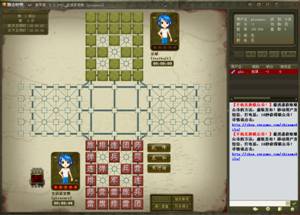在作战开始前,棋盘上只有用户一方的棋子,这是提供用户的一个默认阵型,此时用户可以直接用鼠标单击需要交换位置的棋子,直到阵型令用户满意,就可以按下“保存布阵”按钮把当前布好的阵型存盘,下次使用时可以按下“载入布阵”按钮直接调入了。