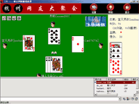 首先联入Internet后,由"联众世界大厅"选择牌类游戏中的三打一,登录后进入游戏室,然后可自由选择对手,四人方坐下并选择"开始"后就可以开始打牌。也可以在其他牌桌观看,只要用鼠标单击正在打牌中的人物图像即可。