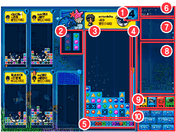 速度指针。游戏开始后速度指针会随着方块的消除而渐渐上升,指针上升到顶部之后会下落到底部重新开始计量。指针每到达顶部一次会给其他玩家(队伍)造成增加一行方块的攻击。