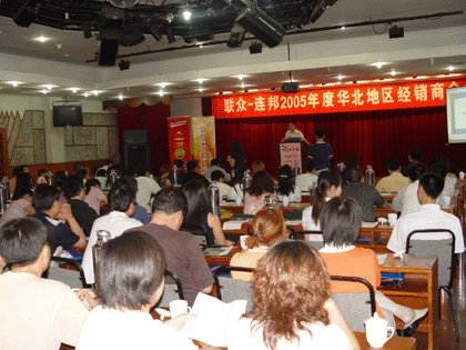 (本站讯)7月2日,北京联众电脑技术有限责任公司和北京连邦软件股份有限公司在北京昌平军都旅游度假村召开了“联众-连邦2005年度华北地区经销商大会”。本次会议是联众公司与连邦公司2005年度新版联众实物卡推广活动的第四站。