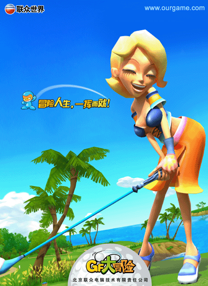 同时,联众世界即将推出的一款大型运动图形游戏“GF大冒险”,将成为本次展会的一大亮点。这款游戏将游戏、竞技和冒险的元素巧妙结合起来。不论您是体育游戏、休闲游戏的爱好者,还是衷情于丰富游戏情节的RPG玩家,都能在GF大冒险中体验到充分的快乐和极大的满足感。游戏中,你将在体验高尔夫挥杆乐趣的同时,与亲密的友人增进友情,谱写浪漫的人生;在与家人共享高尔夫乐趣的过程中,通过网络尽享天伦之乐,拉近彼此心灵的距离……