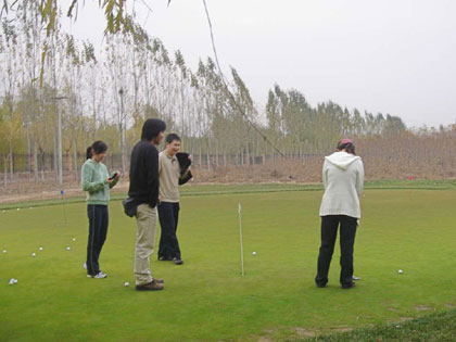 (本站讯)11月12日,高尔夫界顶尖人物泰格·伍兹参加的汇丰高尔夫冠军赛在上海佘山如火如荼地进行着。与此同时,在北京京郊,20名幸运的《GF大冒险》玩家参加了由人民高尔夫网和联众携手举办的“高尔夫畅打”活动,“老虎”的中国之行也引起了无数人对高尔夫运动的关注,而热衷于《GF大冒险》玩家们对于能和心目中的偶像“老虎”异地同时体验高尔夫运动的乐趣而 倍感欣喜。他们中许多人是初摸球杆,但经过《GF大冒险》游戏的锤炼,他们对专业术语耳熟能详,在现场教练的悉心指导下,大家很快都掌握了要领,打得象模象样哦!