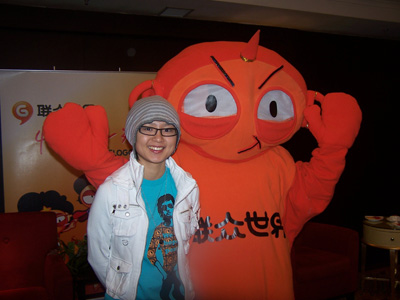27日,经过装饰一新的发布会现场满眼橙色。14:30,发布会在以“变”为主题的表演中拉开序幕。炫目的灯光转换、精妙的魔术表演……精彩的表演单元令现场嘉宾目不暇接。作为神秘嘉宾,目前在国内极具人气的超女周笔畅的到来也给整个发布会带来了意外的惊喜:当面带可爱微笑的笔笔牵着刚刚“诞生”在联众世界的吉祥物登场亮相时,现场气氛达到了最高潮。
