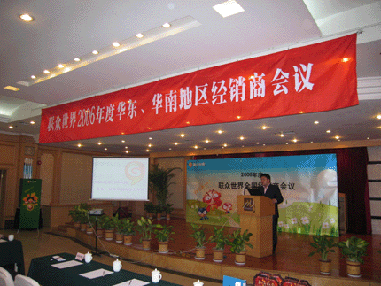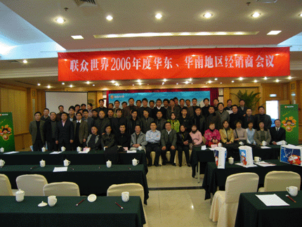 (本站讯)3月18日,北京联众网络技术有限责任公司在南京金陵之星饭店召开了“联众世界2006年度华东、华南地区经销商大会”。本次会议是2006年度联众世界全国经销商会议的第二站。