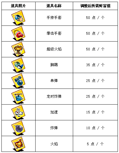 炸弹超人游戏道具财富值数额调整公告