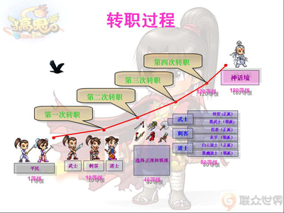 (本站讯)《搞鬼 OL》游戏中,玩家经历平民阶段,在达到10级,即可进行第一次转职,有三种职业可供大家选择:武士、刺客和道士,玩家可以根据喜好选择职业。在达到40级时,进行第二次转职之后,玩家更会因为选择的派系不同而有不同的职业走向。 玩家的转职之路