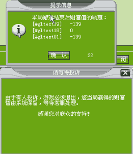 投诉成功后,当局受益者所赢得的财富值暂时由系统保留,待客服人员认定投诉结果;一旦投诉成立,将按损失者当局实际损失补给。
