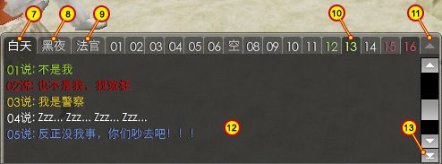 备注:点击画面的空白处取消所有选择,即显示所有人物的白天发言。