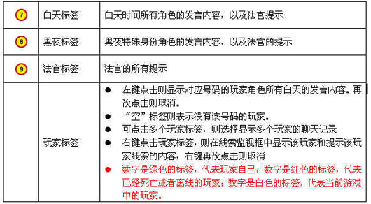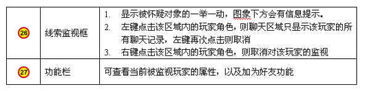 备注:在线索监视框内右键点击则取消对该角色的监视。右键点击法官,法官进入线索监视框,如果法官在给出提示,则显示:“法官正在给出提示。”