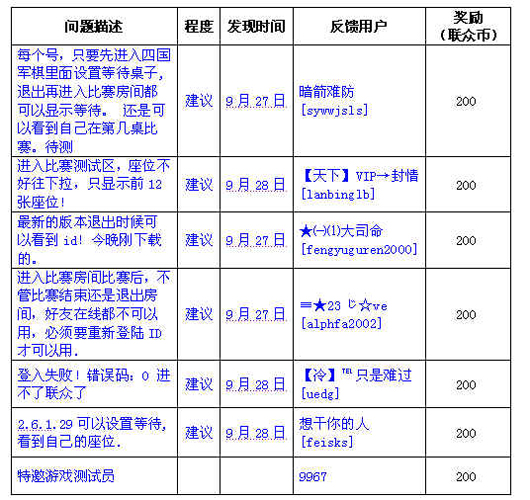 四国军棋功勋赛测试赛比赛及BUG反馈的奖励