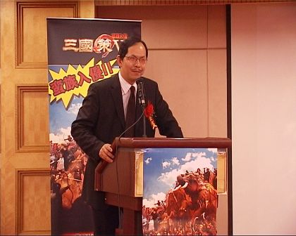 (本站讯)2007年12月12日下午,史上首次由国内大知名游戏公司共同举办的《三国策V联合新闻发布会》在北京新世纪日航酒店隆重举行,联合推出唯一策略网游大作《三国策V》,联众总裁伍国樑先生、《三国策V》的制作方皓宇互动董事长罗春晖先生均出席并致辞。游戏界、新闻界100多位嘉宾参与了这场重要的盛会。