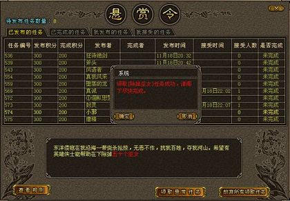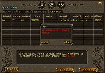 8、在领取的任务被其他玩家完成的情况下可以通过点击放弃所有领取任务按钮即可放弃所有已领取的悬赏任务;