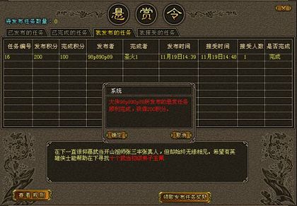 5、每个玩家每日最多只能发布5条悬赏任务;