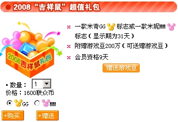 (本站讯)4月24日起,联众商城推出“2008吉祥鼠超值礼包”,内含内容见下图: