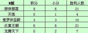 H组: 游侠登顶 埃尔罗伊圣殿中上演决战 H组中游侠部落可以说是一枝独秀,三战全胜积9分也早早的锁定了十六强的一个席位,同时他们也是8个小组中第一个率先闯进十六强的军团。