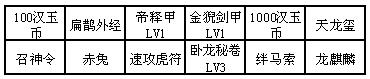 开福袋兑宝物 福袋内将随机出现以下汉玉币或宝物的其中一种:马上兑换