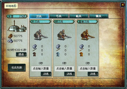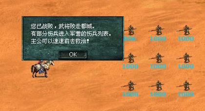 在兵营界面增加按钮“伤兵列表”,点击伤兵列表弹出“等待治疗”的伤兵列表,玩家可根据自己的需求对伤兵进行治疗。治疗伤兵需要消耗一定的资源和金钱,如果得不到治疗,每日0:00伤兵营中每个兵种的伤兵按照一定比例出现死亡现象。