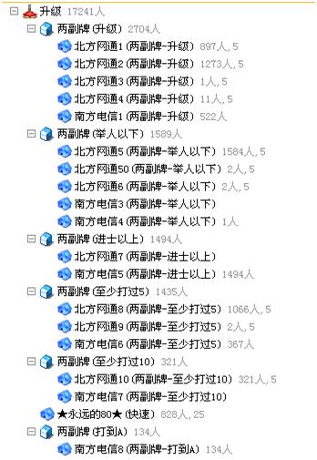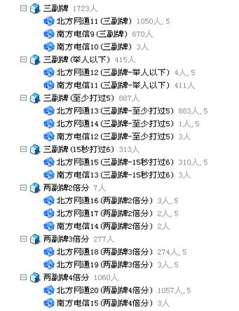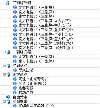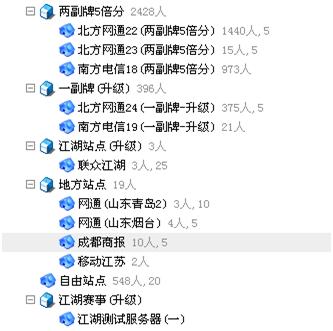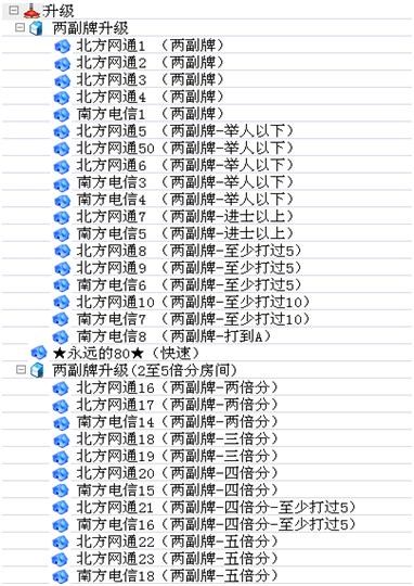 为了让用户更加方便选择并进入升级游戏,升级游戏服务器现做出系列调整,在不添加或删除任何服务器的情况下,也不对任何服务器进行规则上的调整,只是将一副牌的服务器放到同一个节点,两副牌的服务器归纳到一个节点,两副牌倍分服务器归纳到一个节点,三副牌的服务器归纳到一个节点,具体如下: