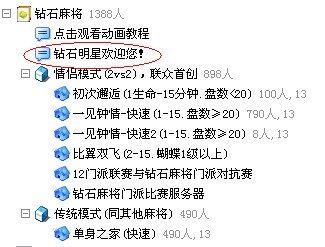 2、大厅列表链接进入:展开大厅的钻石麻将列表,双击钻石明星专题链接。
