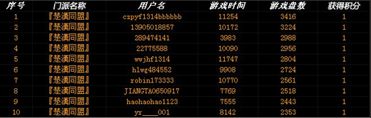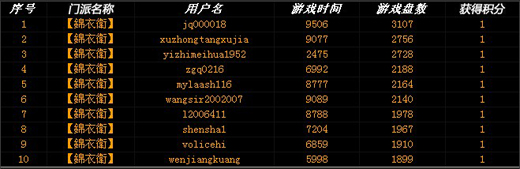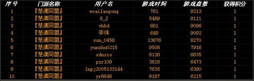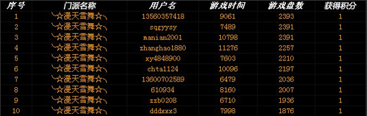 更多内容敬请进入>> 成绩查询 门派评比专题 |