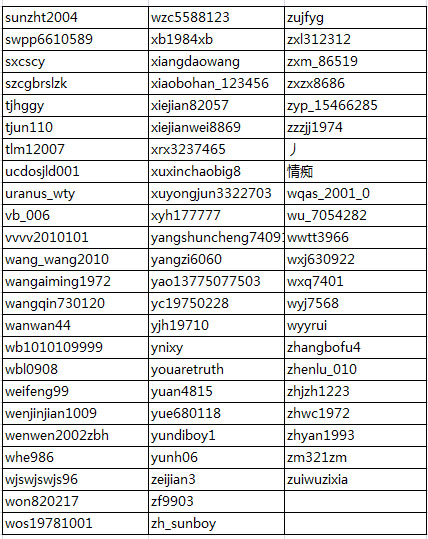 获奖用户名单如下: