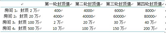 注:在游戏中,第一轮下注数额与界面显示数值会有偏差,所以实际下注额以上表为准。其中在界面还有一个拖拉条,拖拉条显示的数额一旦超过每轮下注的封顶值,则所下注的数额为该轮的封顶值。