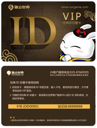 “我和你”系列说明:“我和你”系列属于联众经典两位ID中的一个系列。因ID中有英文中“我”和“你”的缩写 “i”和“u”而得名。起拍价格为单一ID价格,此系列ID为买断ID,附赠一张实物卡,安全有保障。一旦发生争议,以持实物卡为唯一判断归属标准。具有极高的收藏价值。 点击此处进行竞拍 实物卡: