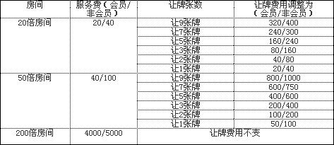 注:让牌费用调整值自2011-6-9 07:00生效。