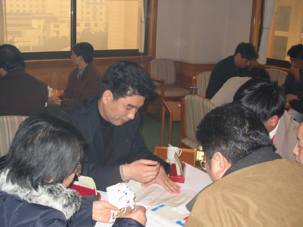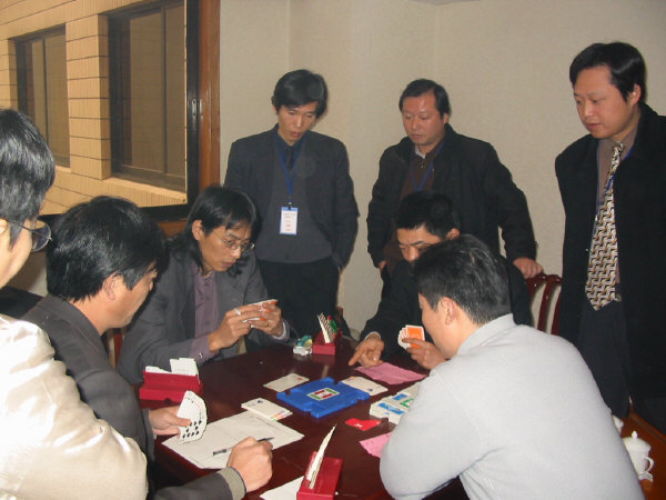 大赛特别邀请了联众公司副总裁简晶,《桥牌》杂志编辑部执行副主编漆有光,以及桥牌国手孙少林、李新等专业高手参加现场决赛的活动。经过两天的现场比赛,产生了本次大赛的冠、亚军。与此同时,参加现场比赛的16名选手,还有幸与我国著名的桥牌国手孙少林、李新进行现场指导赛。
