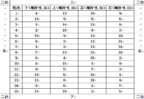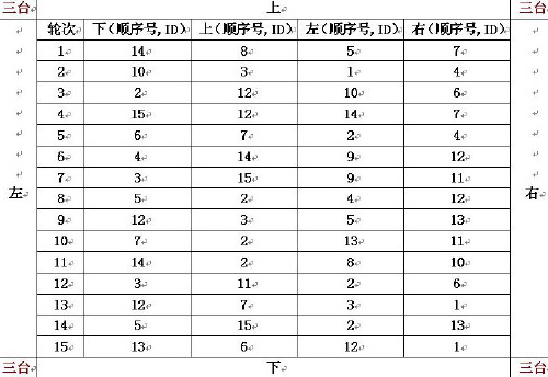对局编排原则: 当到场准备参赛的选手达到一定数量时,系统即安排对局,并将平均分相近者安排在同一台,搭档及对手关系则随机产生;即使到场的选手未达到事先设定的人数,系统也会每隔三分钟即按相同原则安排一批对局。也就是说,无论如何,在到达比赛房间后三分钟内必然可以开始对局,除非一个对手也没有。 系统安排对局时会尽量避免两名选手重复搭档,以及相遇过的选手重复相遇(但遇特殊情况时不能绝对避免)。 系统在空闲选手达到20人或时间到达三分钟的时候,会自动安排比赛。但是由于现在空闲选手过少,而时间到达三分钟的时候,系统会强行安排对局。这样会难免出现平均分有差距的选手在一桌。