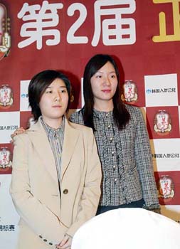 对阵决赛的两个韩国姑娘朴志恩和尹瑛善似乎并不习惯于面对媒体,在发布会上始终低垂着眼帘,表情总有些不自然。不过一说起5日的决赛,两个姑娘的轻声细语中都透露出必胜的信心,让人隐约感到柔弱外表下的阵阵杀气。