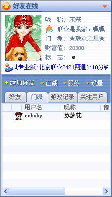 如果您是江湖人士,当您登录好友在线时,在线的本门派成员通常会在门派用户名单中出现。 若当前在线的门派成员人数过多(超过200人)时,需要您手动下载在线门派成员列表。