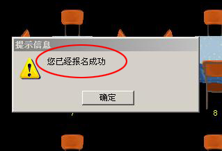 2、当您首次进入比赛服务器后,请您先进入“报名室”,在“报名室中”中坐下后点击“开始”按钮,举手报名。