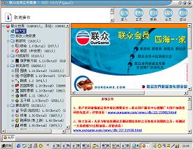 游戏大厅有广告条,功能按钮,联众世界内容列表,网页,公告栏,书签