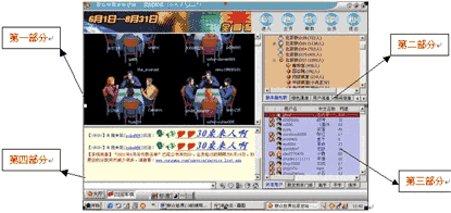 服务器列表、绿色通道、用户信息、房间信息、功能等信息的查看窗口:如果这五个书签中有的您看不见,那么您只要点击这些书签右边的左右方向键,就可以看到了。
